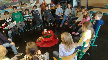 Die Kinder unserer Schule gestalten mit den Religionslehrerinnen die Feier