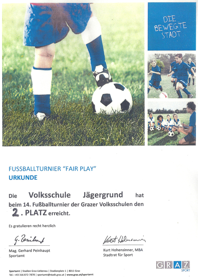 2. Platz beim 14.Fußballturnier der Grazer Volksschulen!